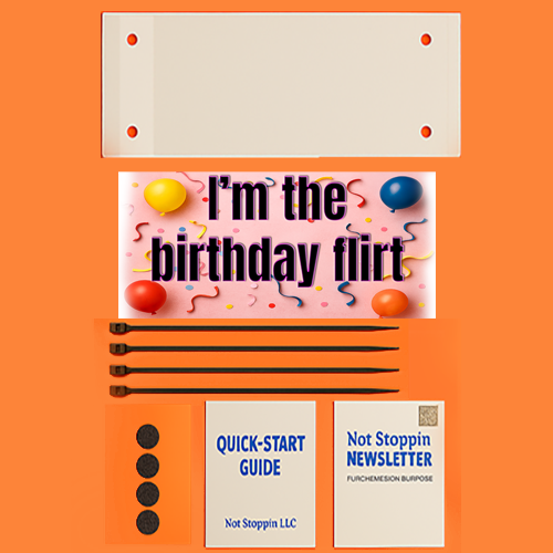 Inside, you’ll find a bold Celebrate insert and a Quick-Start Guide with setup tips and inspiration. With four mounting holes and included zip ties, setup is fast, clean, and mess-free. You’ll also receive the latest edition of the Not Stoppin Newsletter—a printed boost of encouragement, ideas, and voice-forward energy.